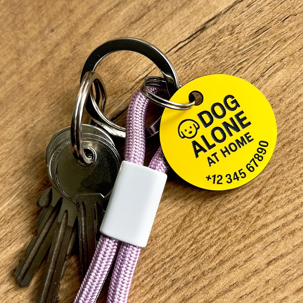 Dank des gelben SOS-Anhängers am Schlüsselbund können Passanten oder Rettungskräfte im Ernstfall sofort deinen Notfallkontakt erreichen – so ist dein Hund schnell versorgt und nicht auf sich allein gestellt.