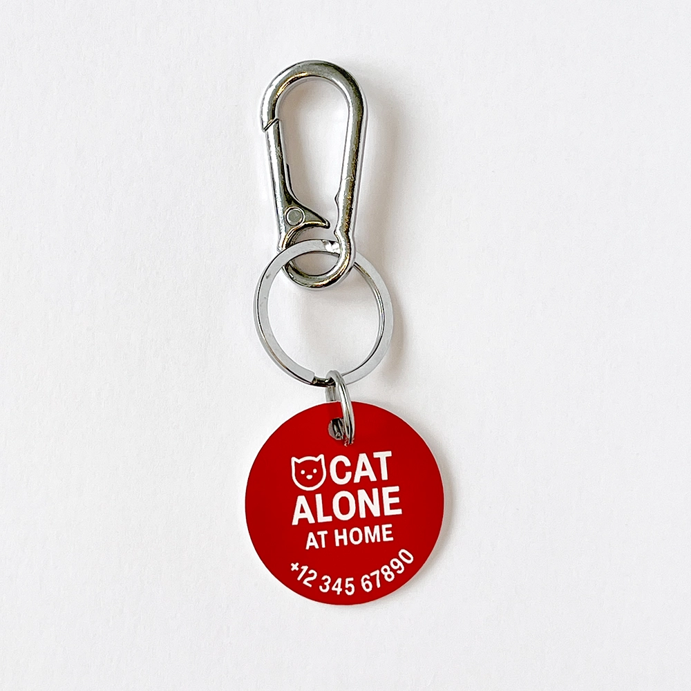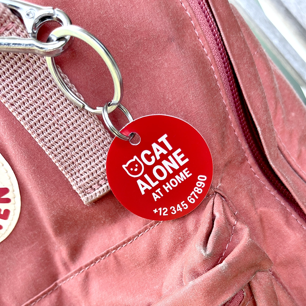 Trage deine Notfallkontakt-Nummer für deine Katze immer bei dir – mit dem SOS-ID Anhänger am Schlüsselbund oder ganz praktisch mit Karabiner an Tasche oder Rucksack.