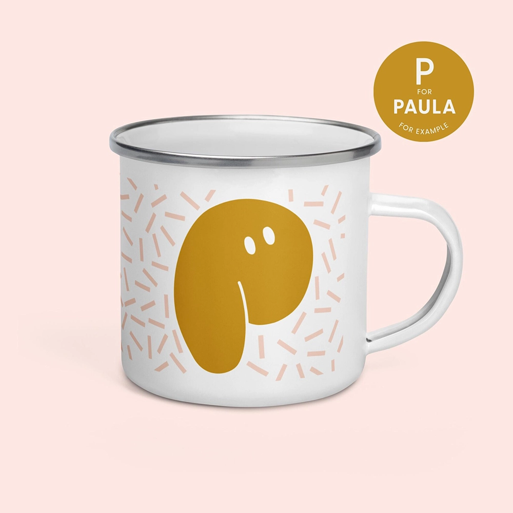 Personalisierte Emailletasse mit Buchstabe